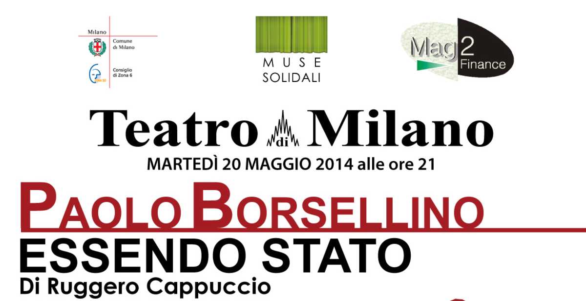 L'iniziativa proposta da Mag2, dal Comune di Milano e dall'Associazione Libera Lombardia porta in scena lo spettacolo interpretato da un gruppo di Magistrati del Tribunale di Milano che salgono sul palcoscenico per commemorare con profonda e toccante poesia la drammatica vicenda del giudice Paolo Borsellino, in occasione del ventennale della sua scomparsa.