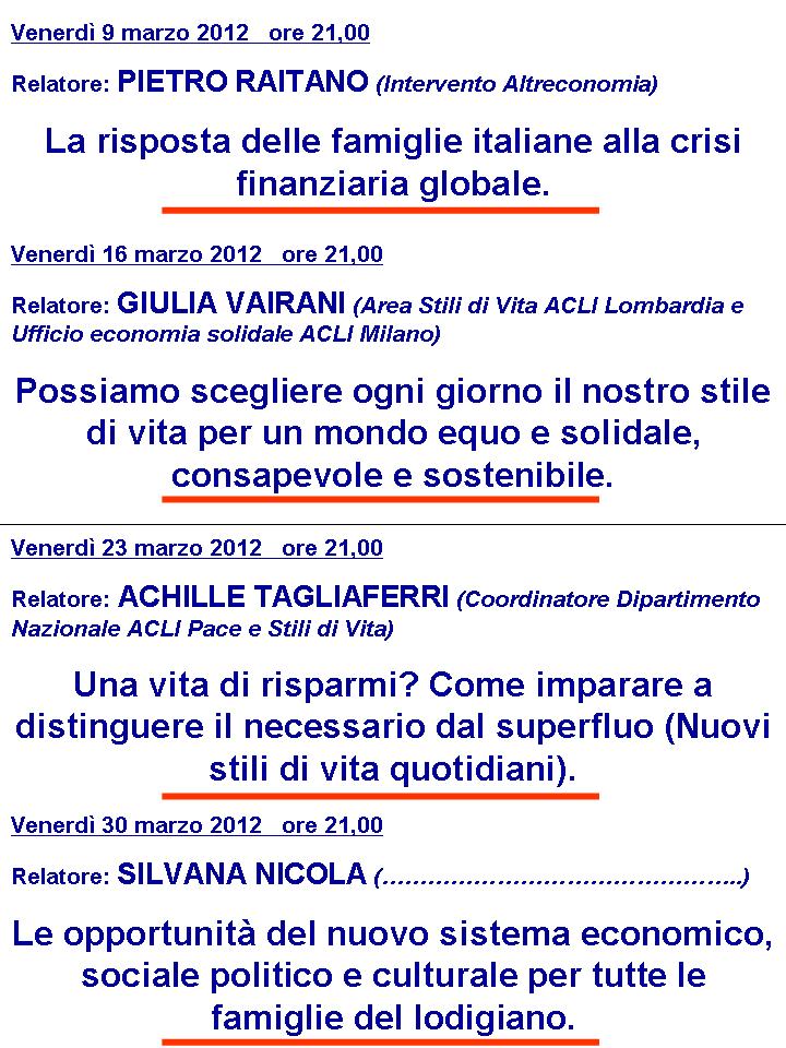 Forse è sano riconoscerlo: il denaro, volenti o nolenti, ha una grande influenza nella nostra vita. Quante cose decidiamo di fare o non fare per lui! Quante volte sentiamo che la sua presenza (o la sua assenza!) condiziona pesantemente la nostra esistenza! E allora perchè non capire meglio il rapporto che ognuno di noi ha con il proprio denaro? Per leggere piu' a fondo ciò che mettiamo in gioco nei suoi confronti ed acquisire strumenti per compiere scelte che ci portino ad un maggior benessere. La finanza mutualistica e solidale oltre ad essere uno strumento concreto di finanza alternativa propone in tutta Italia percorsi culturali di riflessioni sul denaro e sull'uso che ne facciamo. A partire da una sperimentazione di Mag6 di Reggio Emilia nasce cosi questo laboratorio proposto da Mag2 all'interno della fiera organizzata dalla rete di economia solidale di Monza e Brianza.