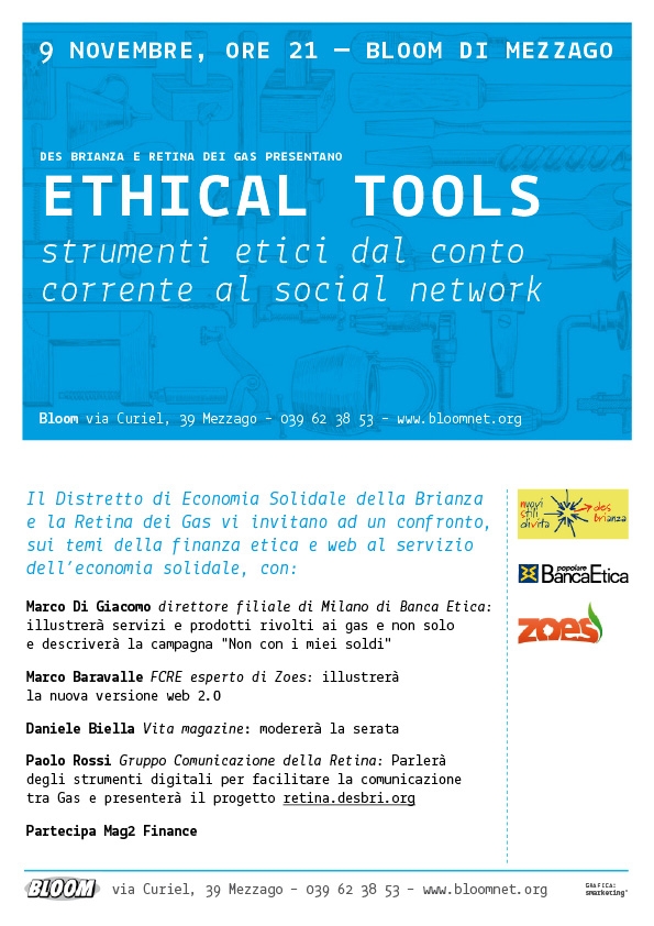 MAG2 (www.mag2.it) è una cooperativa che lavora in Lombardia da 25 anni e che ha messo a punto un meccanismo finanziario VIRTUOSO attraverso cui le comunità locali costruiscono e sostengono le imprese dell’economia solidale investendo i propri risparmi. Soprattutto in un momento di crisi finanziaria internazionale è necessario investire su progetti che ci permettono di sperimentare un modello economico e di benessere sobrio e solidale. Questi progetti attraverso Mag2 sono "garantiti" dalla comunità locale. Oggi sono più di 1.300 i cittadini soprattutto della Lombardia che hanno aderito a Mag2 con un capitale di 2,6 milioni di euro che ha finanziato oltre 250 imprese socio-solidali.