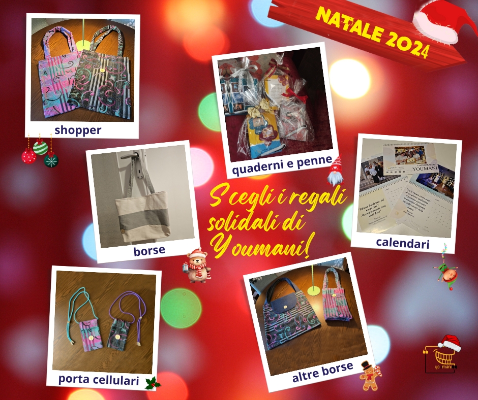 Il Natale è alle porte e per una scelta originale e solidale, vi consigliamo i piccoli e graziosi manufatti di Youmani, l’associazione di volontari che attraverso il teatro sostiene il mondo del terzo settore e veicola con leggerezza messaggi di inclusione e di responsabilità. Le scelte sono variegate e belle come evidenziato dall’immagine e le spese sostenibili, i prezzi partono da 10 euro.