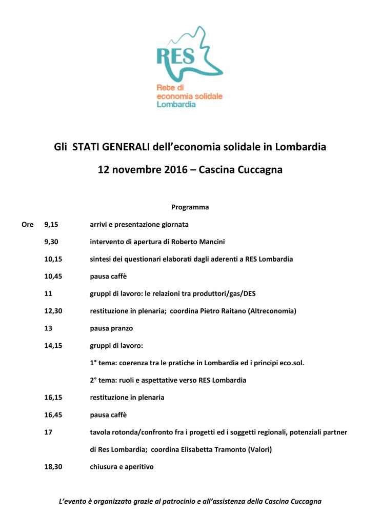 Il 12 novembre 2016 presso la Cascina Cuccagna si terranno gli STATI GENERALI dell'economia solidale in Lombardia.