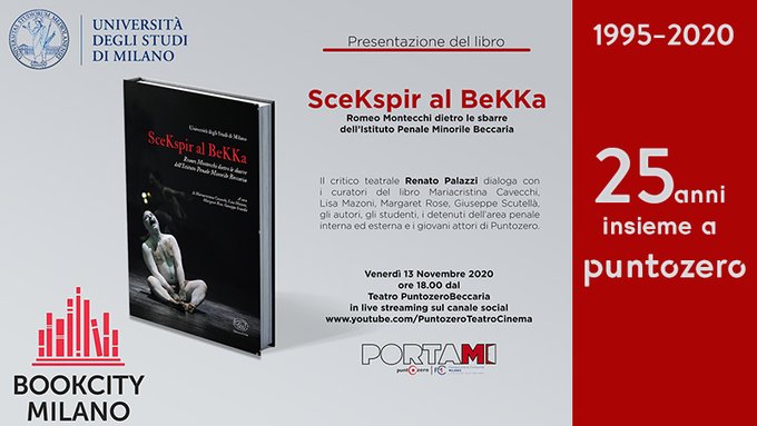 venerdì 13 novembre 2020 alle ore 18:00 in diretta live streaming sul canale social www.youtube.com/PuntozeroTeatroCinema, quando Renato Palazzi presenterà il volume "SceKspir al Bekka. Romeo Montecchi dietro le sbarre dell'Istituto Penale Minorile Beccaria" (Clichy, Firenze, 2020), dedicato a un'avvincente esperienza di teatro in carcere.