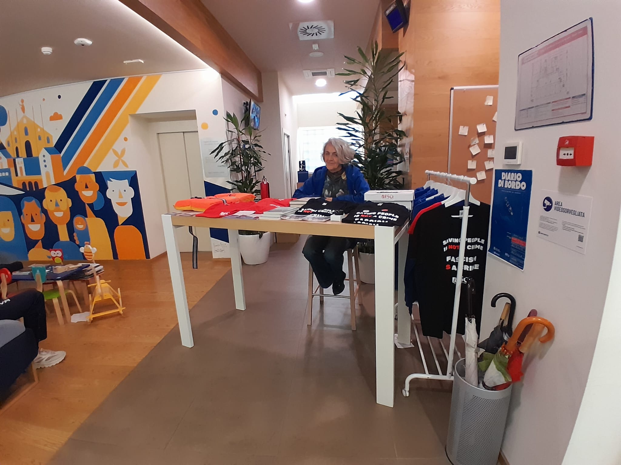 Valori che emergono con forza dai pannelli affissi alle pareti degli uffici e che ci accompagnano alla scoperta dell’avvio e della prosecuzione negli anni dell’impresa che volontarie e volontari di RESQ hanno reso possibile varando la nave che sfida sia le onde che gli attacchi strumentali della politica, mettendo al centro del proprio operato il salvataggio di profughi nel Mediterraneo.
