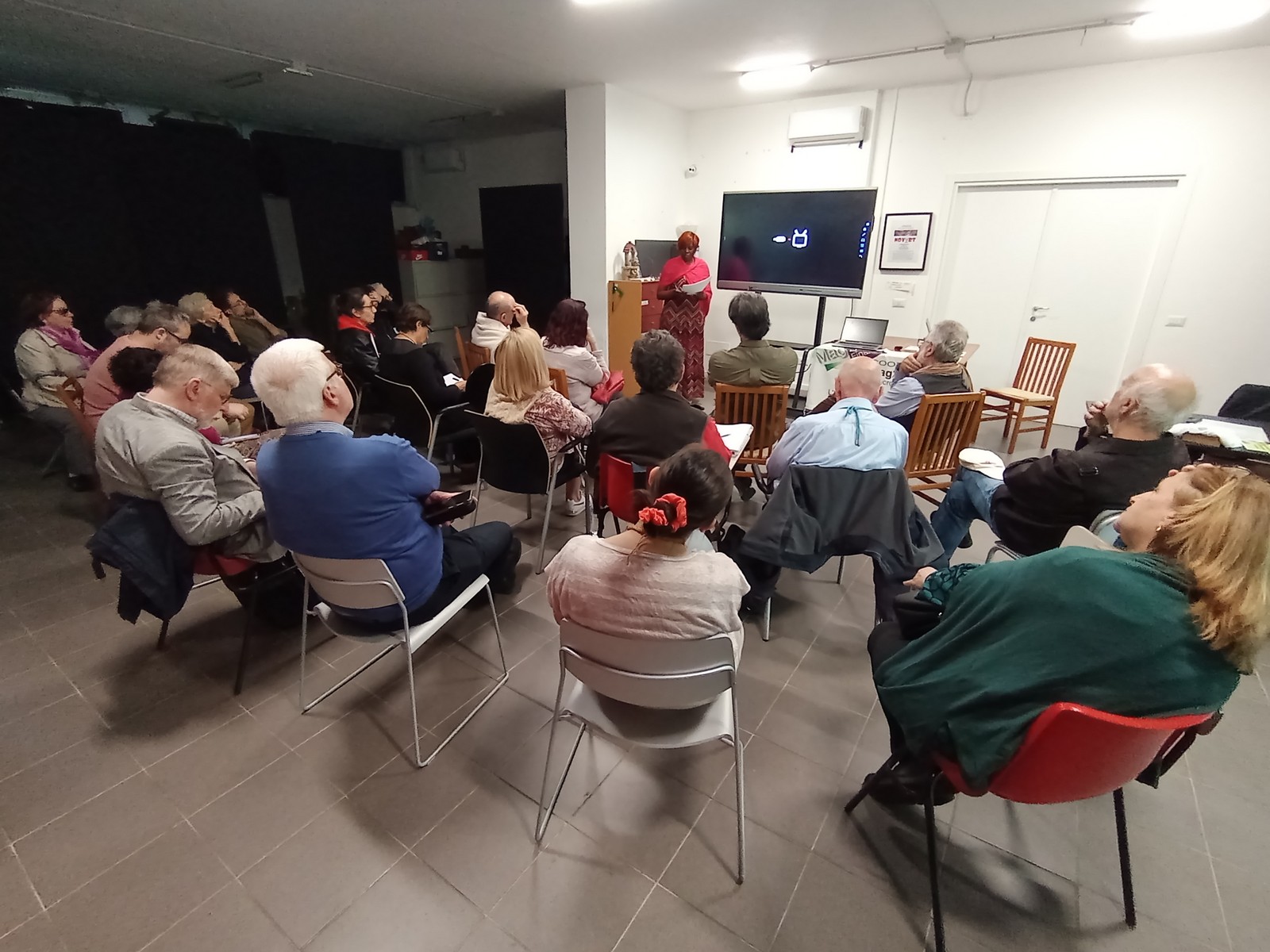 Ad attirare l’attenzione prima delle lettura dettagliata del Bilancio sono state le attività più recenti. Oltre alla già citata Sostenibilità Condivisa, hanno riscosso interesse il racconto della formazione sulla finanza avviata, in collaborazione con la filiale di Banca Etica, in una scuola secondaria di Milano (qui l’articolo) e il percorso di sensibilizzazione nato nel tavolo comunicazione tra le MAG e BPE sulla violenza economica di genere. Un tema protagonista del “dopo Assemblea”, con la proiezione del cortometraggio “Viola” realizzato dalle OffiCine IED, per la cui visione il pubblico alla BKM è aumentato ulteriormente. Un video di pregio capace di raccontare in modo sottile le dinamiche di controllo e sminuimento esercitate dagli uomini sulle donne, del quale abbiamo dibattuto con gli autori, il regista Marco Masante e lo sceneggiatore Raffaele Di Bello, e le rappresentanti di Cerchi d’Acqua, la responsabile di accoglienza Nora Raffaele Addamo e la consulente allo sportello per la violenza economica di genere Giorgia La Sala. Il confronto è stato molto partecipato così come unanime è stato l’apprezzamento del lavoro svolto, il cui messaggio forte e toccante potrà essere veicolato in contesti diversi per aumentare la consapevolezza e la prevenzione su questi temi. A conclusione della serata, ’l’ottimo aperitivo preparato da Anita, vivace ottantenne attiva nel centro BKM, già abituata a dispensare cibo e sorrisi.